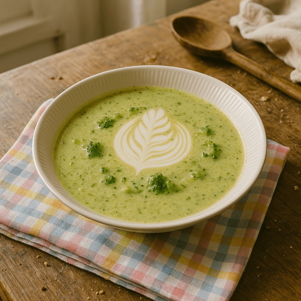 "Haha, 'broccoli-latte suppe'? Høres ud som noget, man bestiller på en hipster café! Men seriøst, den er nem at lave og smager godt. Jeg bruger altid lidt ekstra fløde, fordi jeg kan godt lide den cremede konsistens."
